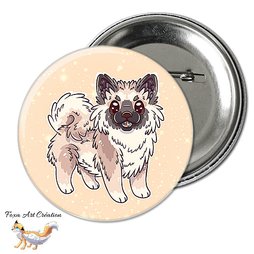 Badge à épingle, Magnet aimanté Eurasier, chien mignon, race, fond couleur sable