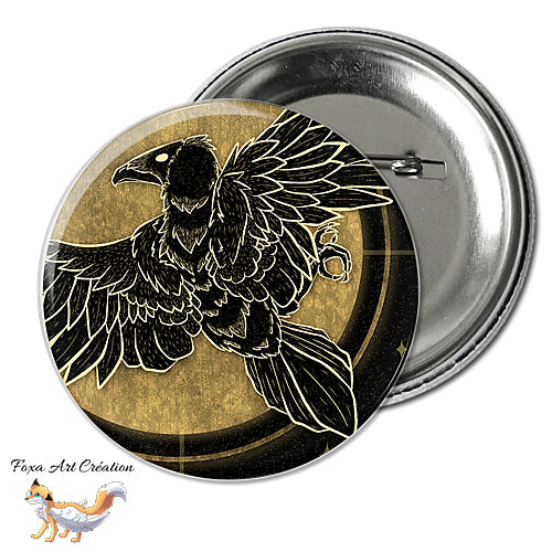 Badge, Magnet pins Corbeau Astral, Illustration, Noir et Or