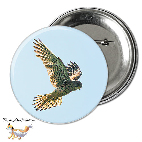 Badge à épingle, Magnet aimanté pins Faucon Crécerelle, Oiseau Rapace, Falco tinnunculus, modèle 1