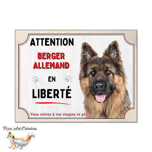 Plaque Attention Berger Allemand en liberté panneau chien