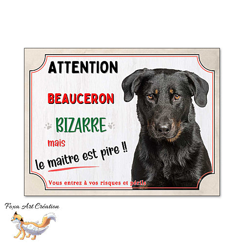 Plaque humour attention au chien Beauceron bizarre Panneau drôle
