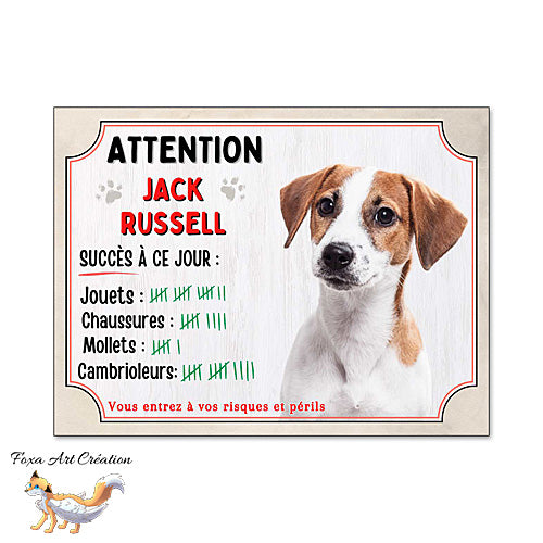 Plaque humour Attention Chien Jack Russell compte ses trophées à ce jour