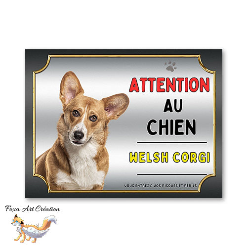Plaque Welsh Corgi Attention au chien Panneau pancarte