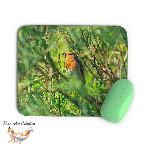 Tapis de souris Rouge-Gorge, Erithacus rubecula, Oiseaux des Jardins, Photographie nature, Modèle 1, décoration de bureau